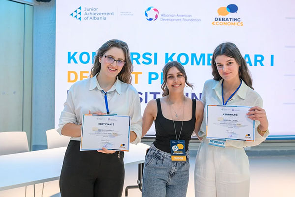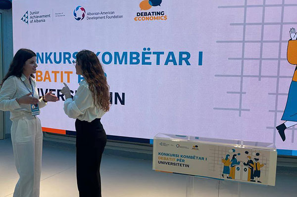 Më 20–21 qershor 2025, studentët tanë u vlerësuan me vendin e dytë në konkursin kombëtar të “Debatit Ekonomik” për Universitetet, organizuar nga Junior Achievement of Albania. Përmes analizave të thelluara ekonomike dhe argumentimit të bazuar, ata treguan një nivel të lartë profesionalizmi dhe njohuri në fushën e ekonomisë. Gjithashtu, në këtë konkurs, studentët e Universitetit “Ismail Qemali”, Vlorë, u renditën në vendin e dytë në nivel kombëtar, ndërkohë që studentja Bianka Kananaj u vlerësua me çmimin e parë “Folësja më e mirë” e konkursit dhe studentja Fjoralba Latifaj mori vendin e tretë si “Folësja më e mirë”. (Reportazh)
